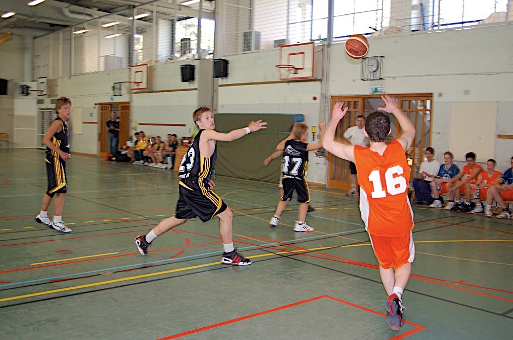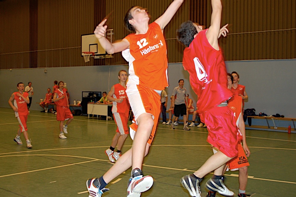 - Mikael hoppar mot korg
