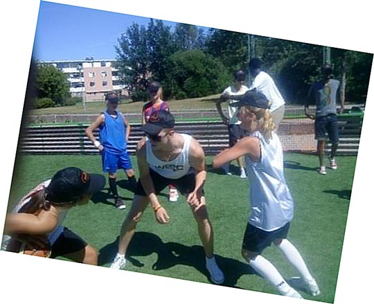Johannes C besökte Nygårds streetplaner. På bilden uppvaktad av 08 Stockholm och U20 landslagets 210 cm långe Kevin Okot.