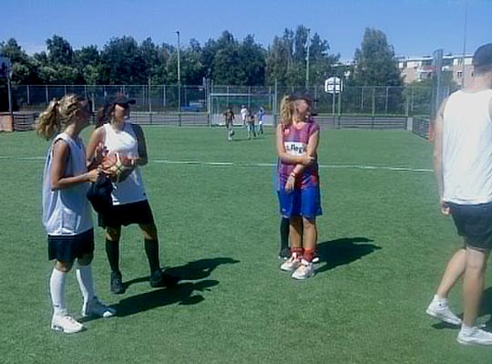 Tova, Erika och Alfrida njuter av det fina vädret i sina supersnygga Ullvi Basket ”kepor”.