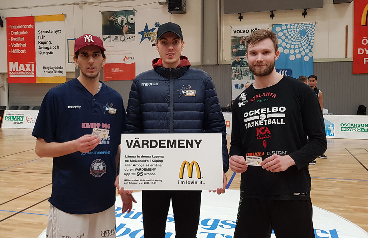 Niklas Larsson från Köping Stars delar ut pris från McDonalds till matchens spelare